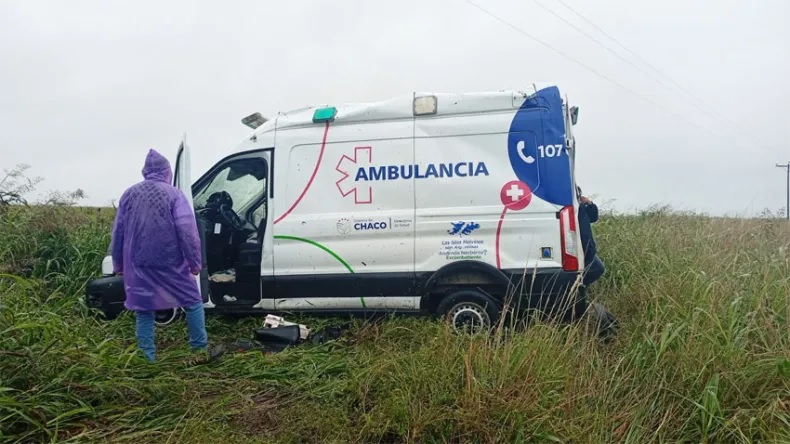 LOS FRENTONES: UNA AMBULANCIA VOLCÓ EN LA RUTA 16: NO HUBO HERIDOS